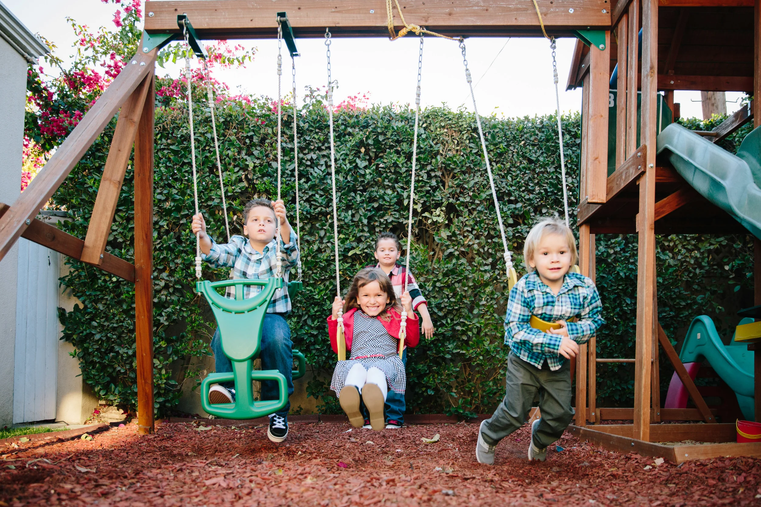 I always ask for the names and ages of the kids before a family session. Knowing the ages and stages helps me prepare with children's characters references (e.g. Thomas the Train) or silly jokes that help break the ice with kids so that they feel more comfortable with me. When mama Allison wrote back that she had 4 children (ages 9 -2), plus a newborn and grandparents who would be in a few frames, I started to sweat! This family couldn't have been more fun to photograph though. They trusted me, played and shared some of their favorite spots around their neighborhood. The fun they have as a family really comes through in these snaps. Welcome baby Dylan, you are so loved!